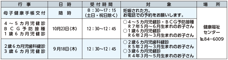 ※日程の変更がある場合があります。各乳幼児健診は個別に通知いたします。