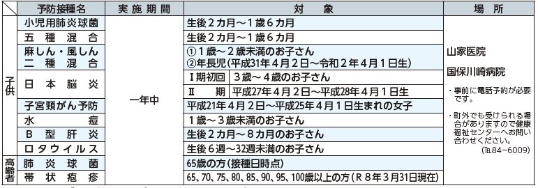 ※受ける前に必ず「予防接種と子どもの健康」を読んでください。