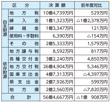 令和6年度、町に入ったお金は、前年度に比べると1億908万円(1・9%)減り、町が使ったお金も、1億9947万円(3・6%)減りました。