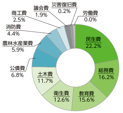 ・総務費…行政の運営や戸籍、税金徴収、選挙などに使われたお金
