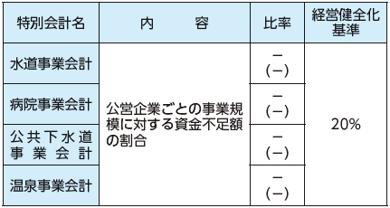 資金不足比率は、公営企業における資金不足額の事業規模に対する割合であり、経営健全化基準以上の場合には「経営健全化計画」を定めることになります。