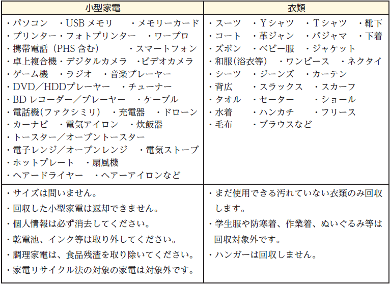 ■〔チェック!〕使用済小型家電や不要な衣類を無料で回収します
