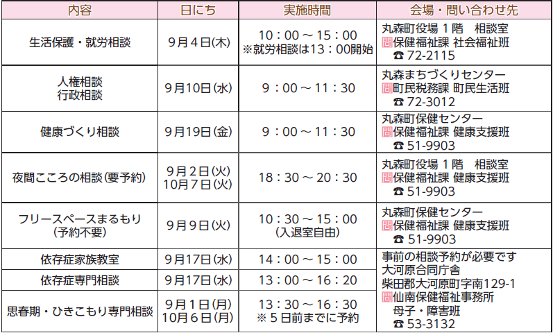くらし 各種相談予定日 13/24 前の記事 次の記事 発行日 : 2025年09月01日 自治体名 : 宮城県丸森町 広報紙名 : 広報まるもり 令和7年9月号 ※相談によって対象者や必要な持ち物が異なりますので、必ず電話等でご確認ください。 Tweet シェアする 映画「オレンジ・ランプ」の上映会のお知らせ! 休日当番医