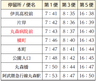 「丸森病院前」または「神明前」をご利用ください。 ※運行ダイヤは変更なし