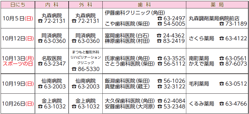 ※都合により変更になる場合もありますので、受診の際は必ず電話でご確認ください。