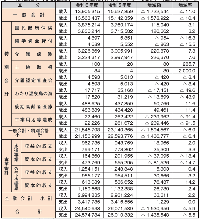 ○一般会計・特別会計・企業会計決算収支一覧表(単位:千円、%)