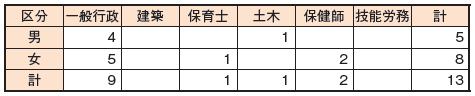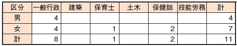 令和6年度採用試験による令和7年4月1日付け採用職員数は次のとおりです。