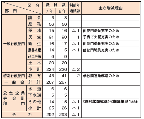 ※職員数は一般職に属する職員数であり、地方公務員の身分を保有する休職者、派遣職員などを含み、臨時または非常勤職員を除いています。