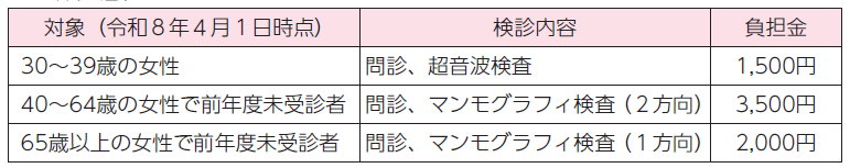 対象・費用・料金:令和8年4月1日時点で20歳以上の女性・3,000円※21・26・31・36・41歳の方は無料。体部がん検診は別途3,000円、HPV検査は別途3,600円かかります。