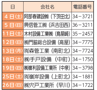 くらし 休日の上下水道修理業者 21/36 前の記事 次の記事 発行日 : 2025年10月01日 自治体名 : 宮城県亘理町 広報紙名 : 広報わたり 令和7年10月号 問合せ:上下水道課 【電話】34-0515 Tweet シェアする Police station 亘理警察署だより〔緊急のときは「110番」へ〕 くらしのメモ