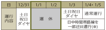 ※初詣に伴う塩釜神社入口付近の交通渋滞が予想されるため、日中時間帯の路線で一部迂回運行します。「本町」「塩釜神社入口」バス停には停車しませんのでご注意ください。迂回路図については、バスの車内、塩釜市内のバス停、町のウェブサイトにてご確認ください。なお、年始の日中時間帯、塩釜方面の運行について