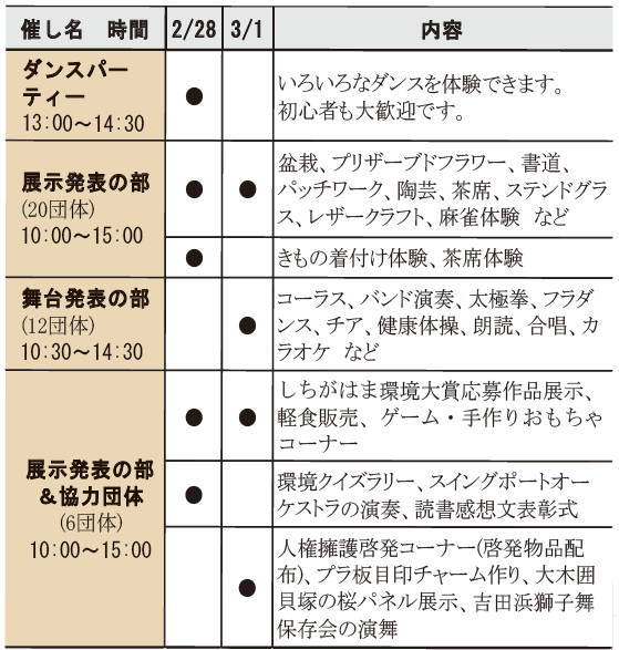 生涯学習センターで活動しているサークルや講座の成果を皆さんに紹介するイベントです。