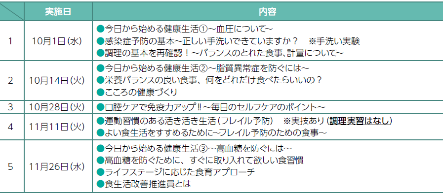 栄養教室は、生涯を通じた健康づくり、生活習慣病の予防のため大切な「栄養・健康・運動・口腔ケア」について楽しく学べる教室です。