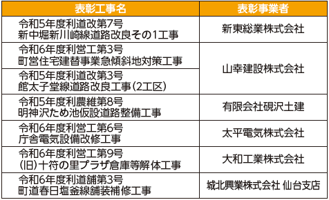 ◇優良建設工事表彰一覧