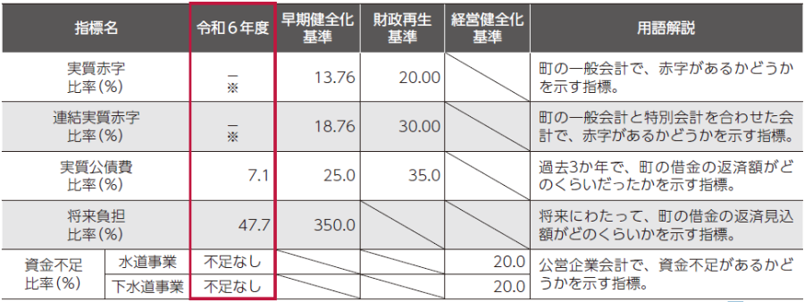 「地方公共団体の財政の健全化に関する法律」に基づき、財政の健全度を測る4つの指標と公営企業(水道事業・下水道事業)の資金不足比率について算定した結果を公表します。