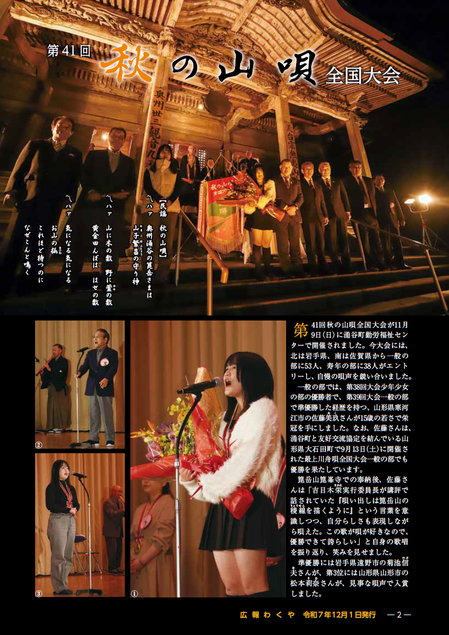 くらし 広報わくや 令和7年12月号 P.2 2/24 前の記事 次の記事 発行日 : 2025年12月01日 自治体名 : 宮城県涌谷町 広報紙名 : 広報わくや 令和7年12月号 Tweet シェアする 広報わくや 令和7年12月号 表紙 広報わくや 令和7年12月号 P.3