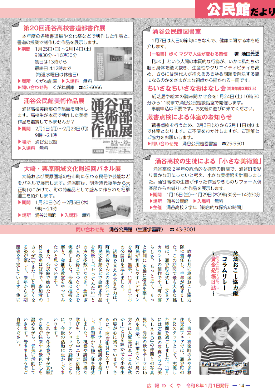 くらし 広報わくや 令和8年1月号 P.14 14/16 前の記事 次の記事 発行日 : 2026年01月01日 自治体名 : 宮城県涌谷町 広報紙名 : 広報わくや 令和8年1月号 Tweet シェアする 広報わくや 令和8年1月号 P.13 広報わくや 令和8年1月号 P.15