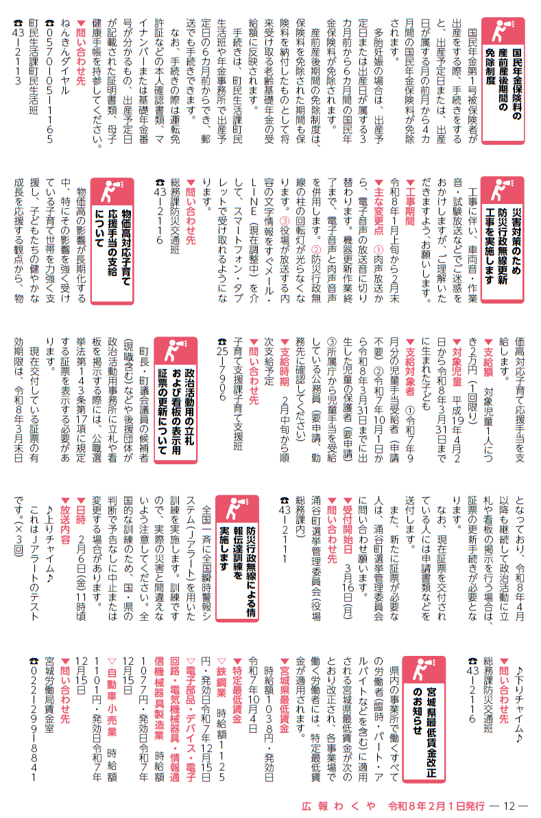 くらし 広報わくや 令和8年2月号 P.12 12/24 前の記事 次の記事 発行日 : 2026年02月01日 自治体名 : 宮城県涌谷町 広報紙名 : 広報わくや 令和8年2月号 Tweet シェアする 広報わくや 令和8年2月号 P.11 広報わくや 令和8年2月号 P.13