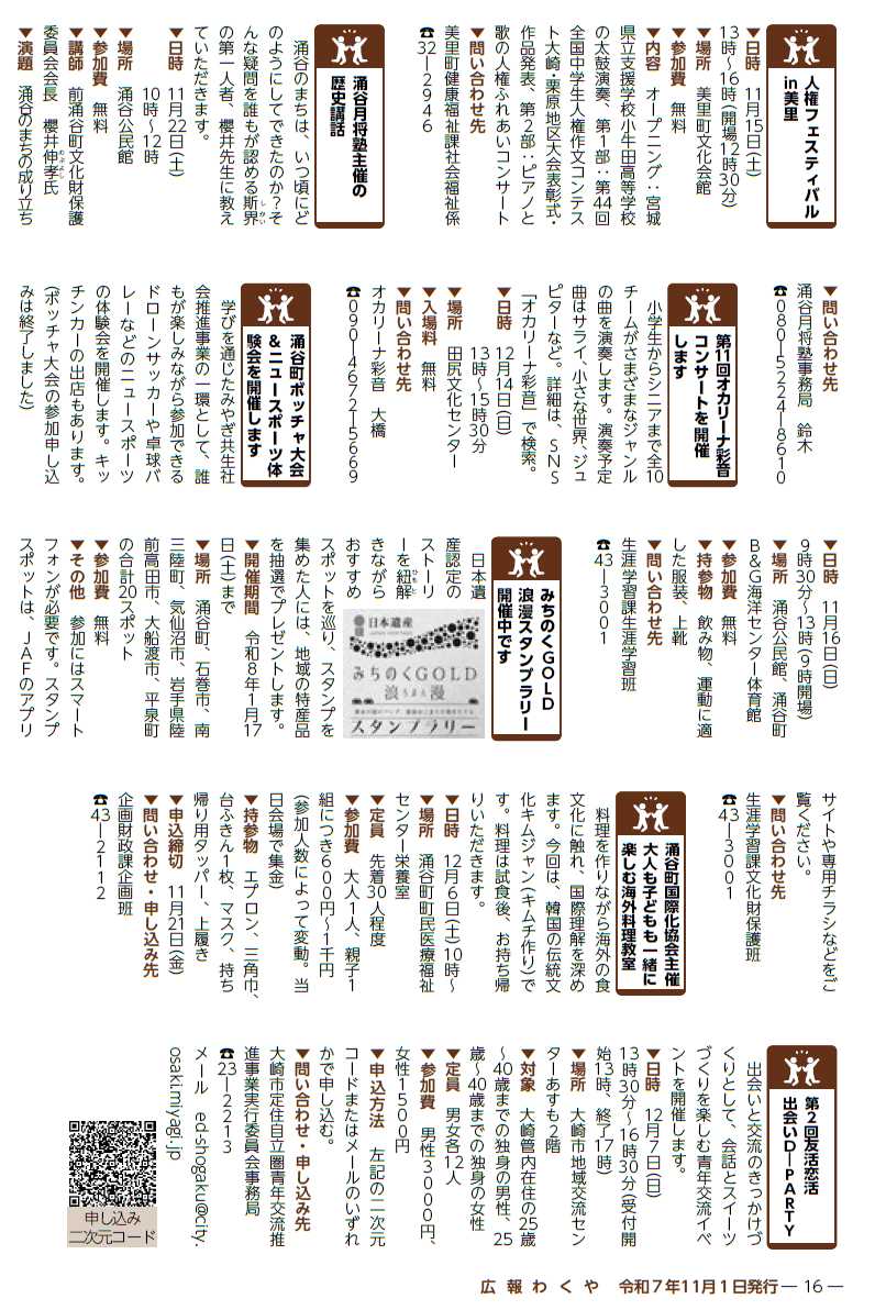 くらし 広報わくや 令和7年11月号 P.16 16/24 前の記事 次の記事 発行日 : 2025年11月01日 自治体名 : 宮城県涌谷町 広報紙名 : 広報わくや 令和7年11月号 Tweet シェアする 広報わくや 令和7年11月号 P.15 広報わくや 令和7年11月号 P.17