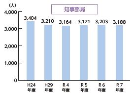 ※うち知事部局の職員数は、行政委員会事務局の職員や再任用職員、任期付職員などを除きます。