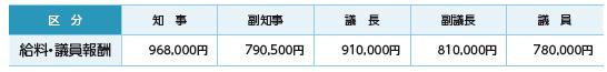 ※この給料・議員報酬は、知事は20%、副知事は15%減額措置後の金額です。なお、副知事の15%減額措置は令和7年4月30日をもって終了しています。