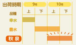 「秋泉」は、市場デビューまで約20年もの年月をかけた、日本梨として初の県オリジナル品種です。大玉で、りんごにも匹敵する濃厚な甘さが特徴。梨特有のジャリジャリ感が少なく、滑らかな舌触りで、芳醇な果汁が溢れ出します。10月頃、秋の深まりとともに味わえる、秋田県自慢の逸品をぜひご堪能ください。