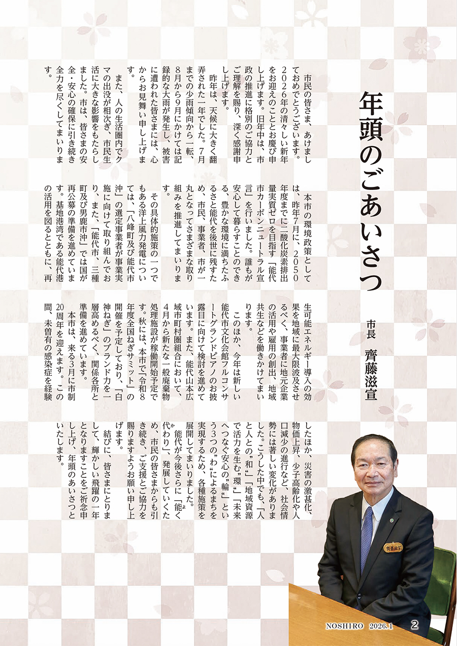 くらし 広報のしろ 令和8年1月号P.2 2/26 前の記事 次の記事 発行日 : 2025年12月25日 自治体名 : 秋田県能代市 広報紙名 : 広報のしろ 令和8年1月号 Tweet シェアする 広報のしろ 令和8年1月号 表紙 広報のしろ 令和8年1月号P.3