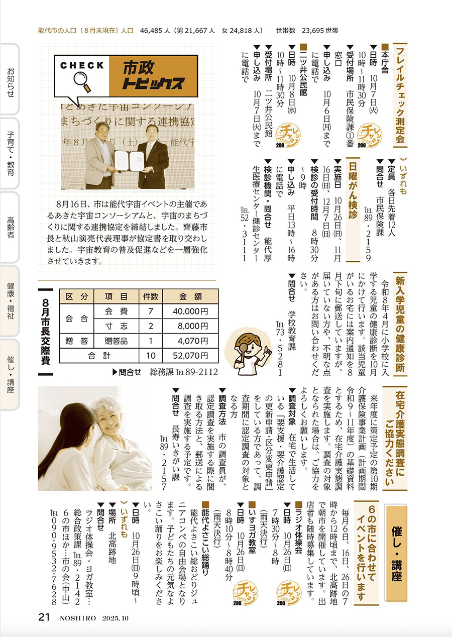 くらし 広報のしろ 令和7年10月号P.21 16/25 前の記事 次の記事 発行日 : 2025年09月25日 自治体名 : 秋田県能代市 広報紙名 : 広報のしろ 令和7年10月号 Tweet シェアする 広報のしろ 令和7年10月号P.20 広報のしろ 令和7年10月号P.22