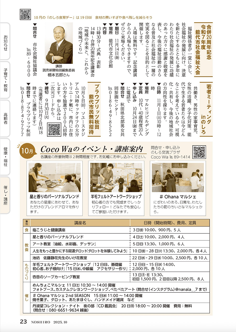 講座 広報のしろ 令和7年10月号P.23 18/25 前の記事 次の記事 発行日 : 2025年09月25日 自治体名 : 秋田県能代市 広報紙名 : 広報のしろ 令和7年10月号 Tweet シェアする 広報のしろ 令和7年10月号P.22 広報のしろ 令和7年10月号P.24