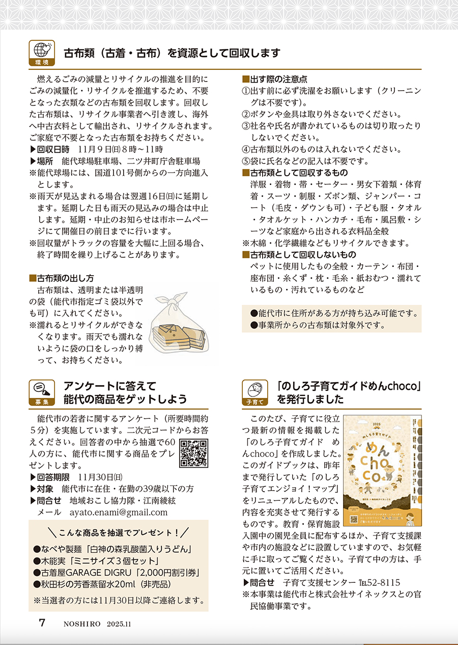 くらし 広報のしろ 令和7年11月号P.7 5/25 前の記事 次の記事 発行日 : 2025年10月25日 自治体名 : 秋田県能代市 広報紙名 : 広報のしろ 令和7年11月号 Tweet シェアする 広報のしろ 令和7年11月号P.6 広報のしろ 令和7年11月号P.8