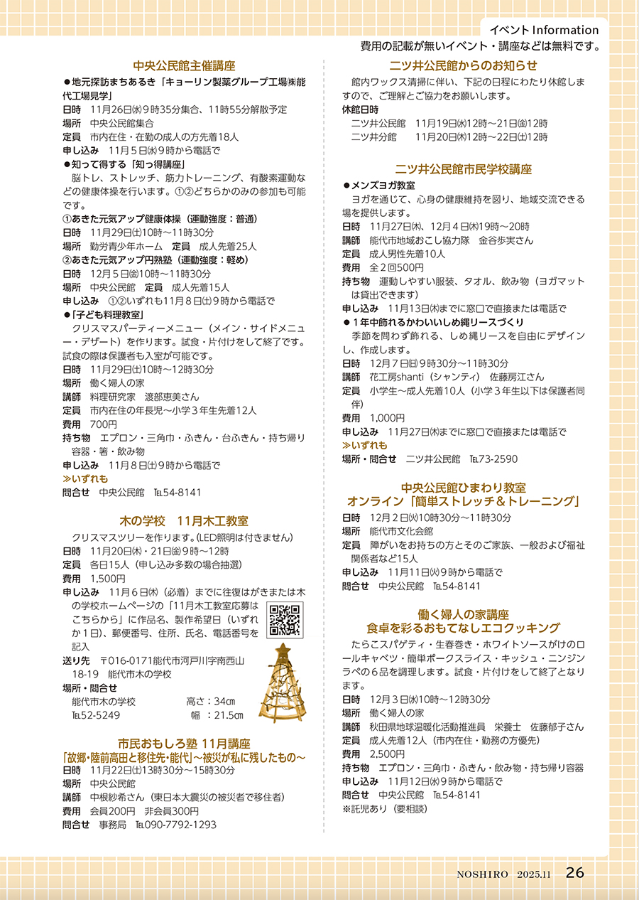 講座 広報のしろ 令和7年11月号P.26 21/25 前の記事 次の記事 発行日 : 2025年10月25日 自治体名 : 秋田県能代市 広報紙名 : 広報のしろ 令和7年11月号 Tweet シェアする 広報のしろ 令和7年11月号P.25 広報のしろ 令和7年11月号P.27