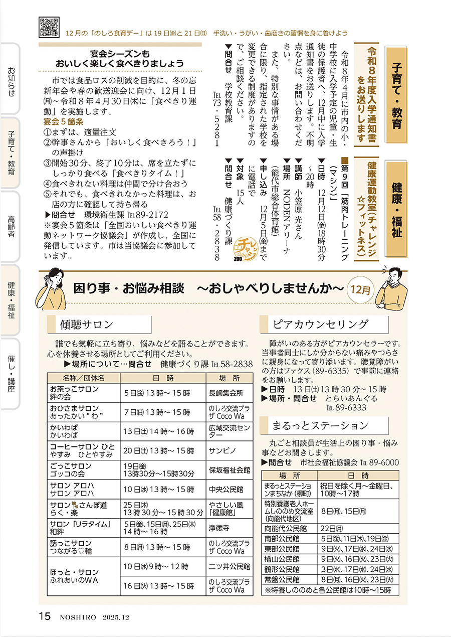 くらし 広報のしろ 令和7年12月号P.15 12/27 前の記事 次の記事 発行日 : 2025年11月25日 自治体名 : 秋田県能代市 広報紙名 : 広報のしろ 令和7年12月号 Tweet シェアする 広報のしろ 令和7年12月号P.14 広報のしろ 令和7年12月号P.16