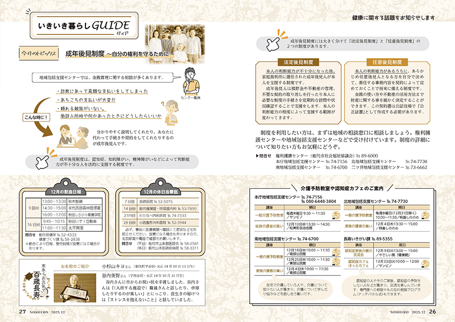 くらし 広報のしろ 令和7年12月号P.26-P.27 20/27 前の記事 次の記事 発行日 : 2025年11月25日 自治体名 : 秋田県能代市 広報紙名 : 広報のしろ 令和7年12月号 Tweet シェアする 広報のしろ 令和7年12月号P.24-P.25 広報のしろ 令和7年12月号P.28