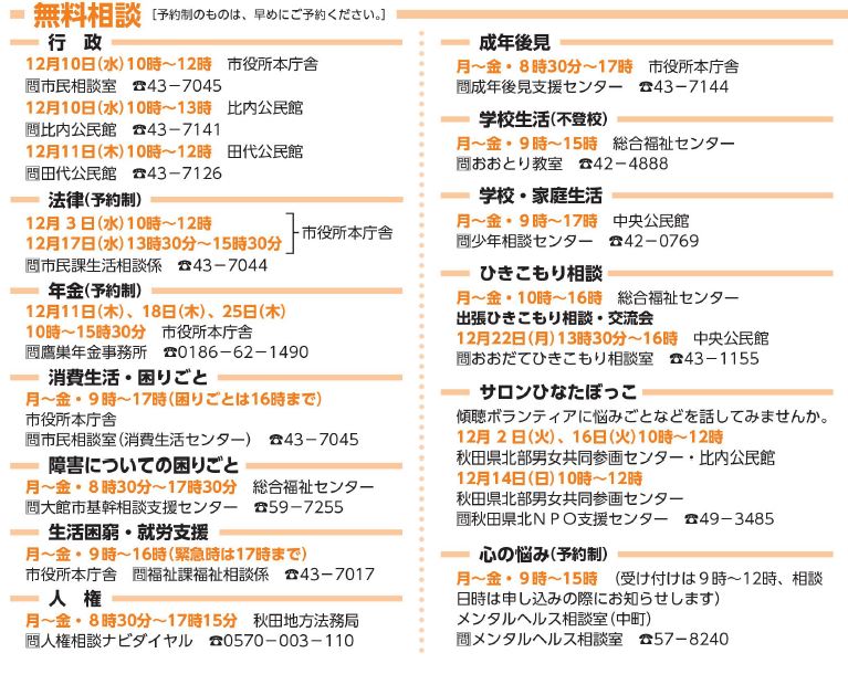 くらし 無料相談 25/27 前の記事 次の記事 発行日 : 2025年12月05日 自治体名 : 秋田県大館市 広報紙名 : 広報おおだて 令和7年12月号 Tweet シェアする 生活ガイド 今月の納期限・口座振替日