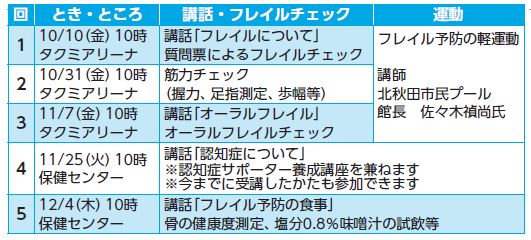 対象:軽い運動が可能な40歳以上74歳以下の市民で、全5回中3回以上参加できるかた