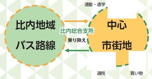 幹線バスの利用促進と地域の足を確保するため、比内地域のバス路線の再編を実施します。