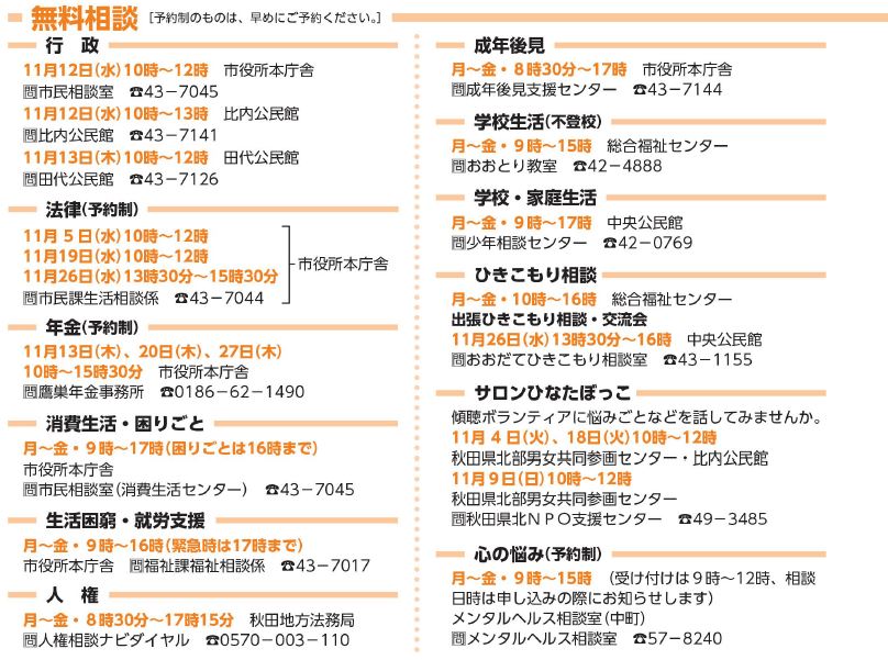 くらし 無料相談 22/24 前の記事 次の記事 発行日 : 2025年11月05日 自治体名 : 秋田県大館市 広報紙名 : 広報おおだて 令和7年11月号 Tweet シェアする 生活ガイド 今月の納期限・口座振替日