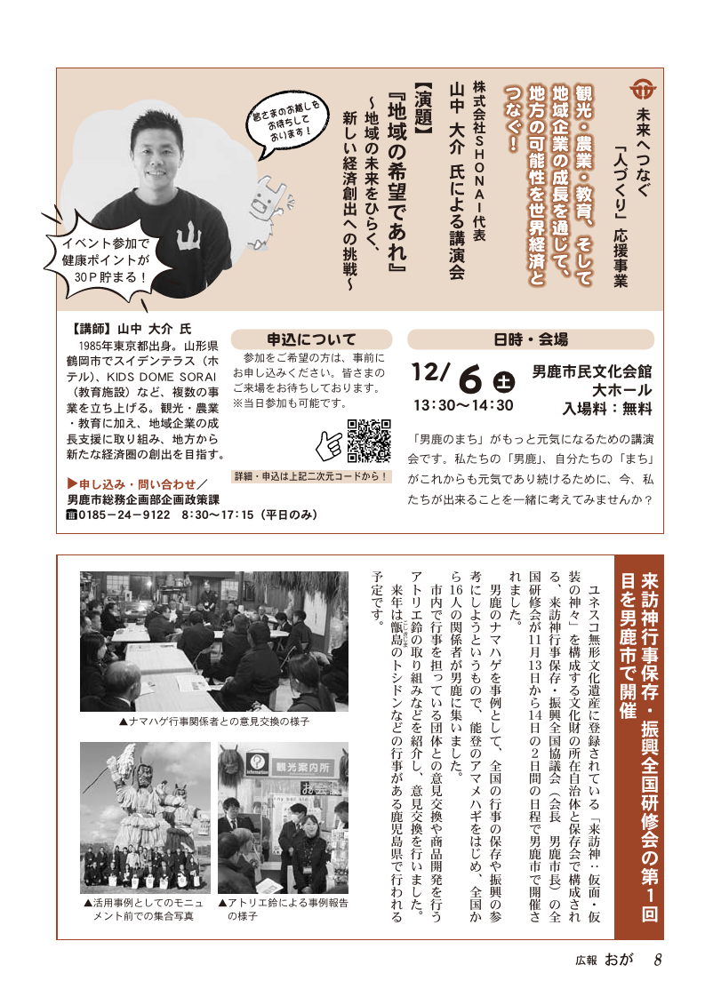 くらし 広報おが(2025年12月号) P.08 8/32 前の記事 次の記事 発行日 : 2025年12月01日 自治体名 : 秋田県男鹿市 広報紙名 : 広報おが (2025年12月号) Tweet シェアする 広報おが(2025年12月号) P.07 広報おが(2025年12月号) P.09