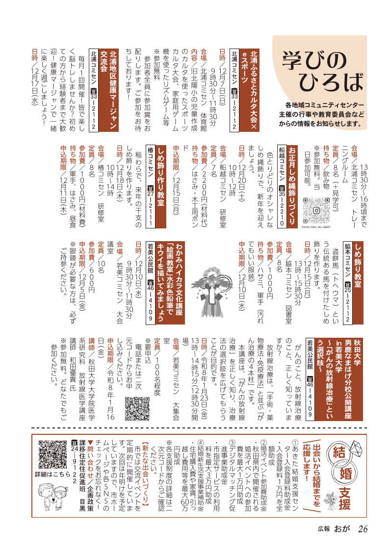 講座 広報おが(2025年12月号) P.26 26/32 前の記事 次の記事 発行日 : 2025年12月01日 自治体名 : 秋田県男鹿市 広報紙名 : 広報おが (2025年12月号) Tweet シェアする 広報おが(2025年12月号) P.25 広報おが(2025年12月号) P.27