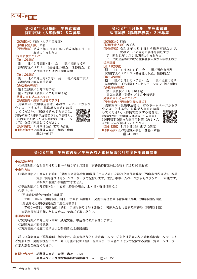 くらし 広報おが(2026年1月号) P.21 21/30 前の記事 次の記事 発行日 : 2026年01月01日 自治体名 : 秋田県男鹿市 広報紙名 : 広報おが (2026年1月号) Tweet シェアする 広報おが(2026年1月号) P.20 広報おが(2026年1月号) P.22