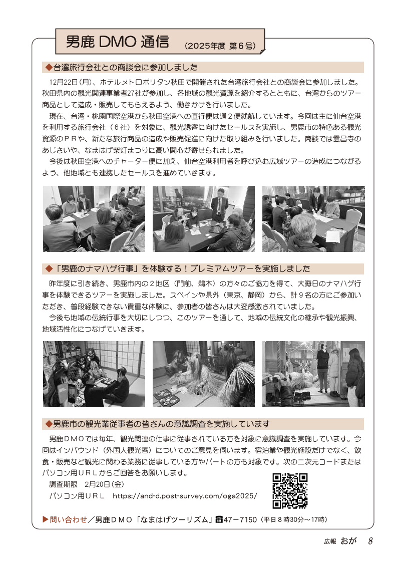 くらし 広報おが(2026年2月号) P.08 8/26 前の記事 次の記事 発行日 : 2026年02月01日 自治体名 : 秋田県男鹿市 広報紙名 : 広報おが (2026年2月号) Tweet シェアする 広報おが(2026年2月号) P.07 広報おが(2026年2月号) P.09