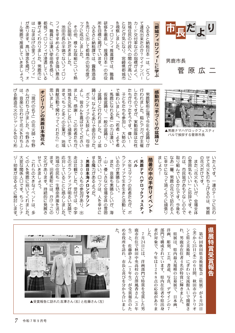 くらし 広報おが(2025年9月号) P.07 7/32 前の記事 次の記事 発行日 : 2025年09月01日 自治体名 : 秋田県男鹿市 広報紙名 : 広報おが (2025年9月号) Tweet シェアする 広報おが(2025年9月号) P.06 広報おが(2025年9月号) P.08