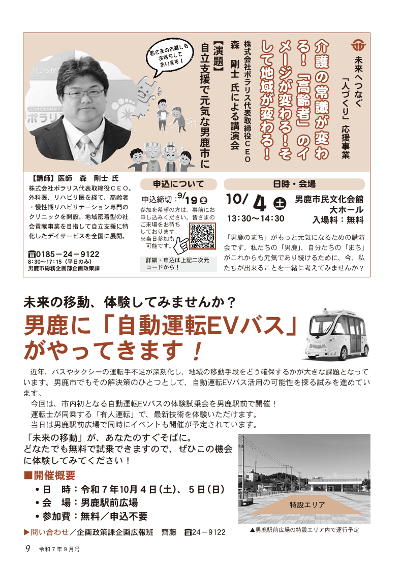 くらし 広報おが(2025年9月号) P.09 9/32 前の記事 次の記事 発行日 : 2025年09月01日 自治体名 : 秋田県男鹿市 広報紙名 : 広報おが (2025年9月号) Tweet シェアする 広報おが(2025年9月号) P.08 広報おが(2025年9月号) P.10