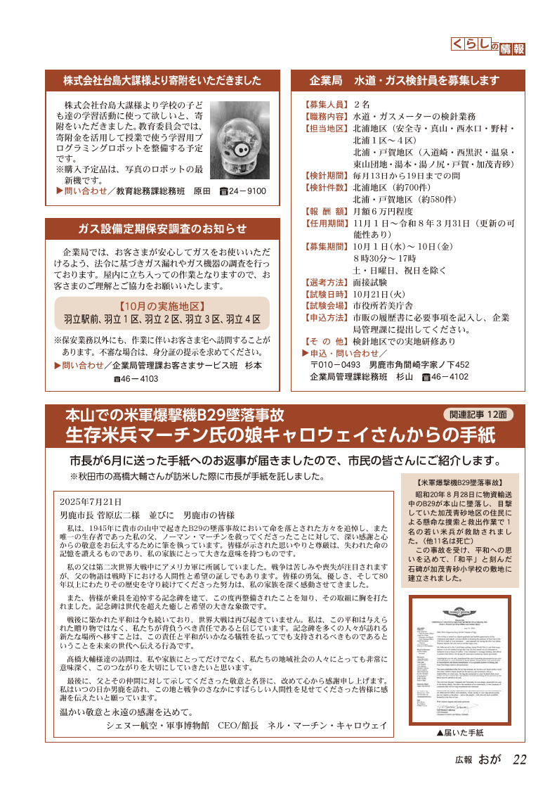 くらし 広報おが(2025年10月号) P.22 22/32 前の記事 次の記事 発行日 : 2025年10月01日 自治体名 : 秋田県男鹿市 広報紙名 : 広報おが (2025年10月号) Tweet シェアする 広報おが(2025年10月号) P.21 広報おが(2025年10月号) P.23
