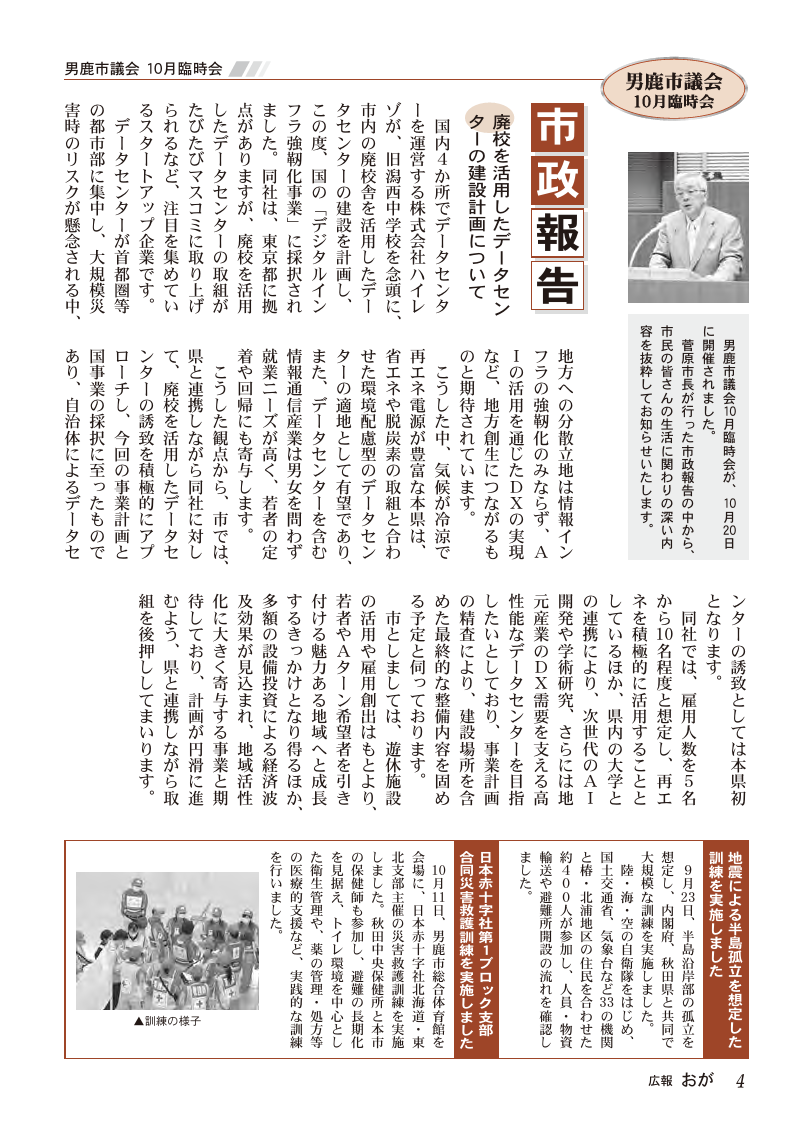 くらし 広報おが(2025年11月号) P.04 4/26 前の記事 次の記事 発行日 : 2025年11月01日 自治体名 : 秋田県男鹿市 広報紙名 : 広報おが (2025年11月号) Tweet シェアする 広報おが(2025年11月号) P.03 広報おが(2025年11月号) P.05