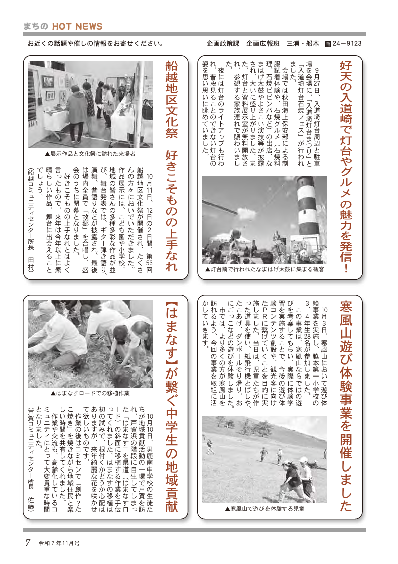 くらし 広報おが(2025年11月号) P.07 7/26 前の記事 次の記事 発行日 : 2025年11月01日 自治体名 : 秋田県男鹿市 広報紙名 : 広報おが (2025年11月号) Tweet シェアする 広報おが(2025年11月号) P.06 広報おが(2025年11月号) P.08