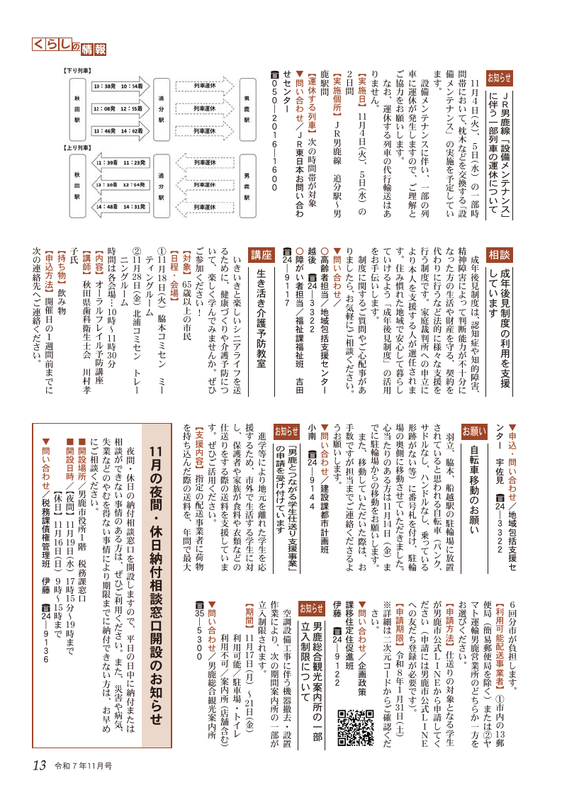 くらし 広報おが(2025年11月号) P.13 13/26 前の記事 次の記事 発行日 : 2025年11月01日 自治体名 : 秋田県男鹿市 広報紙名 : 広報おが (2025年11月号) Tweet シェアする 広報おが(2025年11月号) P.12 広報おが(2025年11月号) P.14