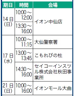 21日は、昼休憩のため担当者が不在の時間があります。ご了承ください。会場・時間は、変わる場合があります。