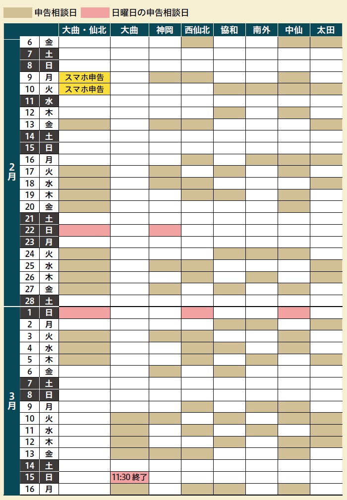 ※仙北単独の申告会場はありませんので、ご注意ください。