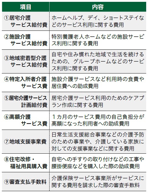 40歳以上の方が納付している介護保険料は、介護保険サービスの費用(内訳は円グラフ)に使われています。また、サービス費用には介護保険料のほかに税金も使われています。